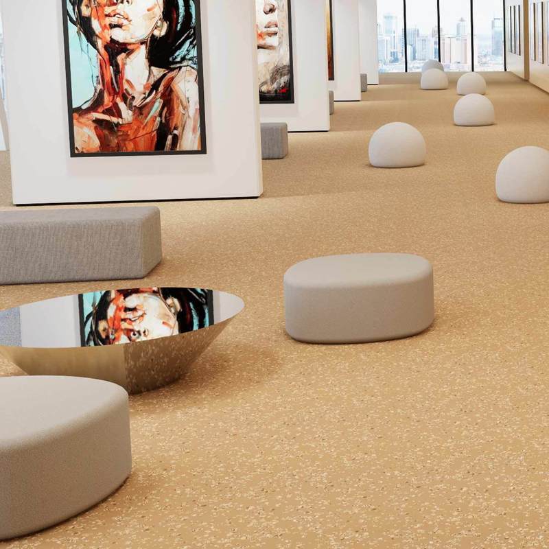 Patented Surface: PUR-coated for easy maintenance, stain resistance, and non-toxicity — ideal for museum hygiene and safety. Eco-Friendly Formulation: 100% bio-based plasticizer with ≥75% sustainable materials, matching global green museum initiatives. Air Quality Control: Low TVOC emission (<10μg/m³ after 28 days) to safeguard artifact preservation via clean air. Homogeneous Structure: Rubber core ensures uniform durability and stability for high-traffic exhibition areas. |