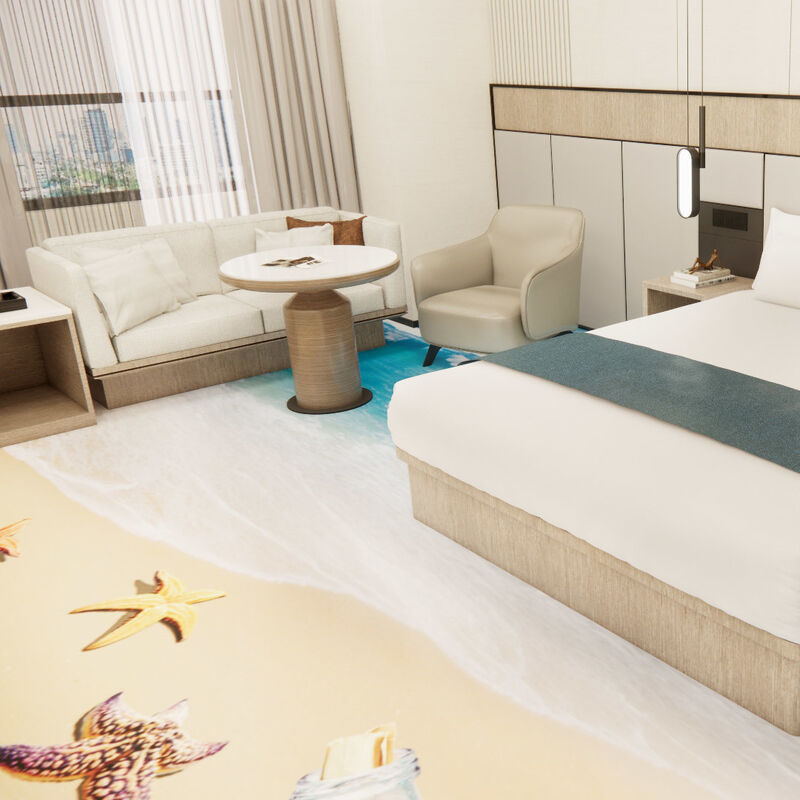 Customizable 3D floor stickers support your own designs with high-definition printing; featuring a multi-layer structure for soft comfort, wear resistance, and suitability for hotels, malls, and various commercial spaces.