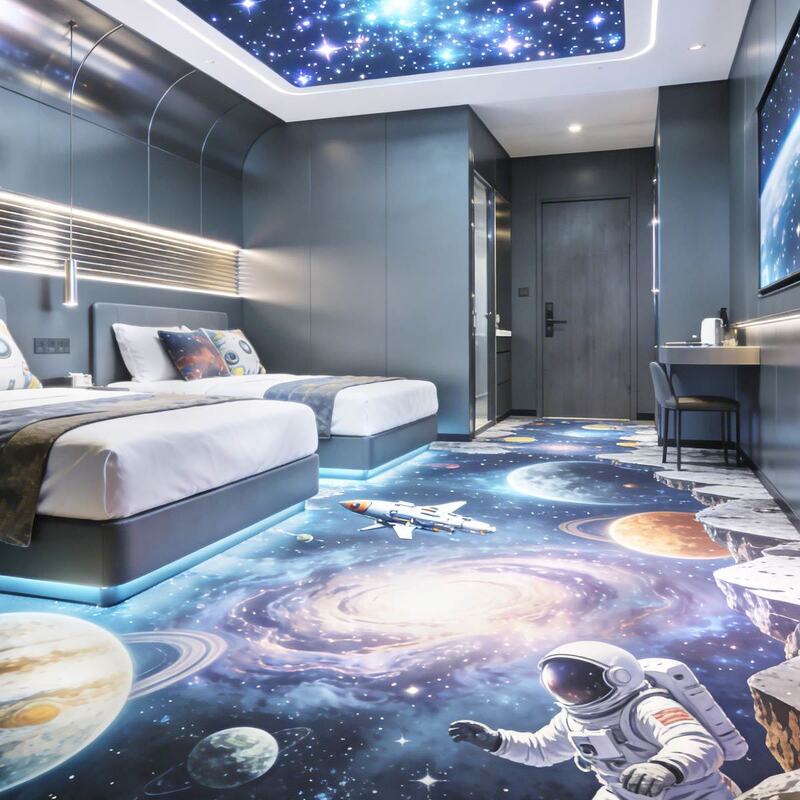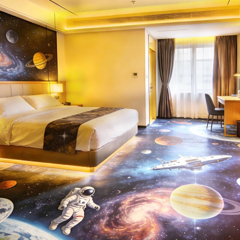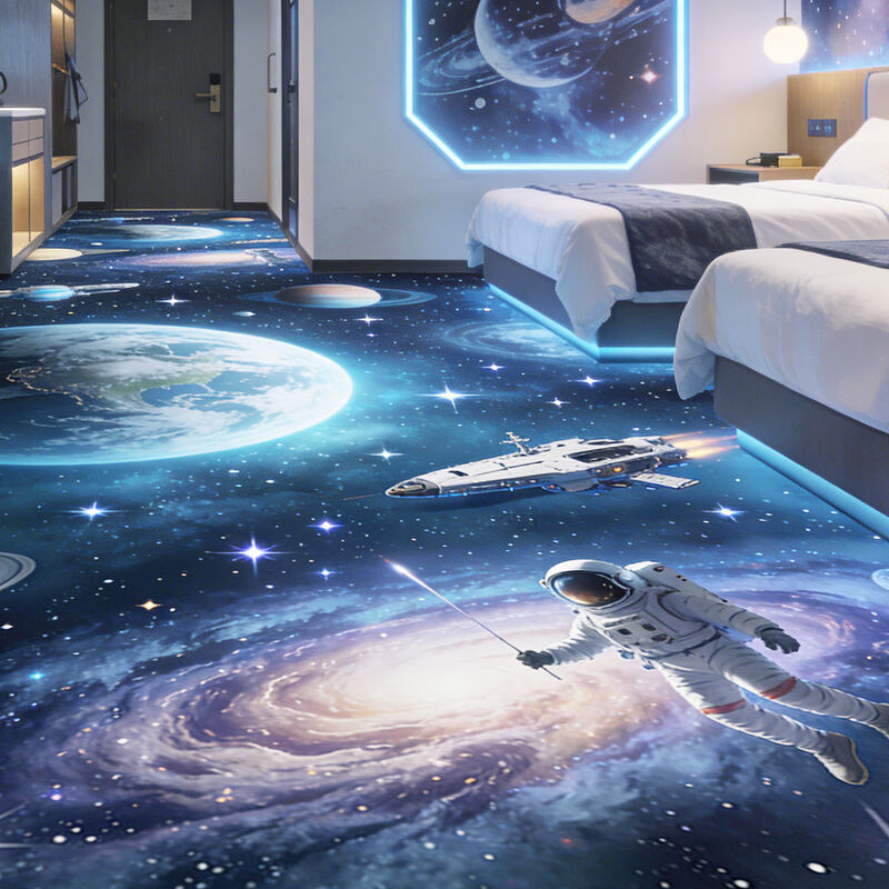 Customizable 3D floor stickers support your own designs with high-definition printing; featuring a multi-layer structure for soft comfort, wear resistance, and suitability for hotels, malls, and various commercial spaces.