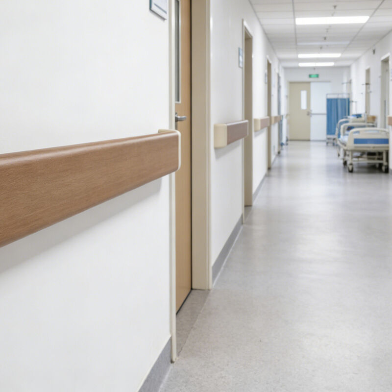 Relle ADA-Compliant Wood Effect Corridor Handrail, Impact-Resistant
